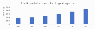 Die bereits oben beschriebene Verbesserung der Kreditqualität erklärt das aktuell niedrige Niveau der durchschnittlichen Risikoprämie. Im Vergleich zur Vergangenheit hat sich das durchschnittliche Rating im Zeitverlauf um eine Ratingkategorie auf aktuell BB (12,4) erhöht, was in der Abbildung 1 zu erkennen ist. Diese strukturelle Senkung des Spread-Niveaus sollte nicht außer Acht gelassen werden. Betrachtet man die Durchschnittsspreads der jeweiligen Ratingkategorien, zeigt sich, dass das Spread-Niveau ohne diese Bonitätsverbesserung aktuell um etwa 45 Basispunkte höher liegen würde. Die nachfolgende Grafik verdeutlicht zudem den exponentiellen Anstieg des eingepreisten Risikos (gemessen am Asset Swap Spread) bei abnehmender Bonität.