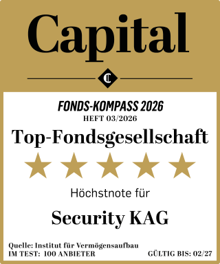 Nur eine kleine Zahl der bewerteten Fondsgesellschaften erreicht im Capital Fonds-Kompass die Höchstbewertung. Die aktuelle Platzierung unterstreicht den wissenschaftlich fundierten und datengetriebenen Investmentansatz der Security KAG, mit dem innovative und nachhaltige Lösungen für Anlegerinnen und Anleger entwickelt werden.